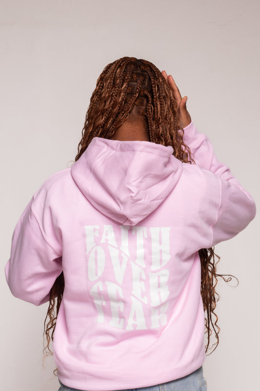 FAITH OVER FEAR HOODIE | PINK / WHITE