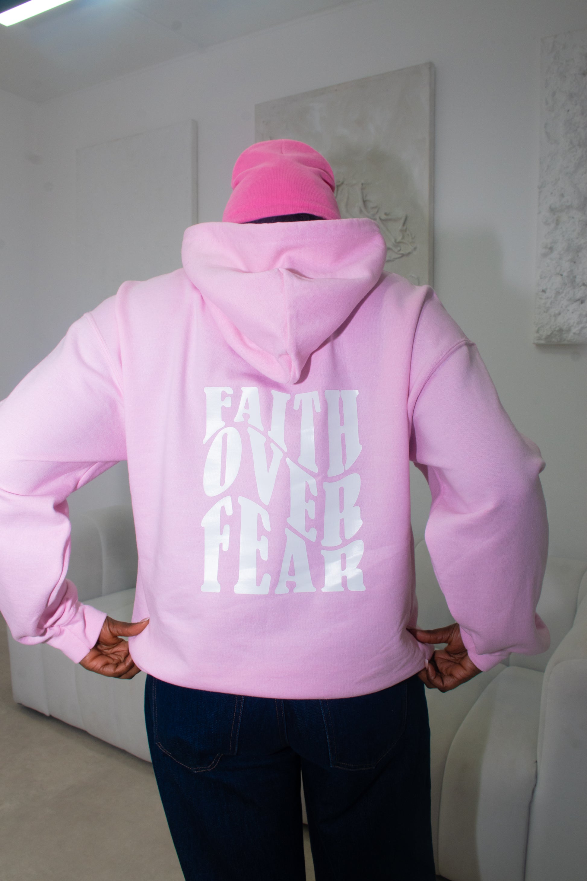 FAITH OVER FEAR HOODIE | PINK / WHITE