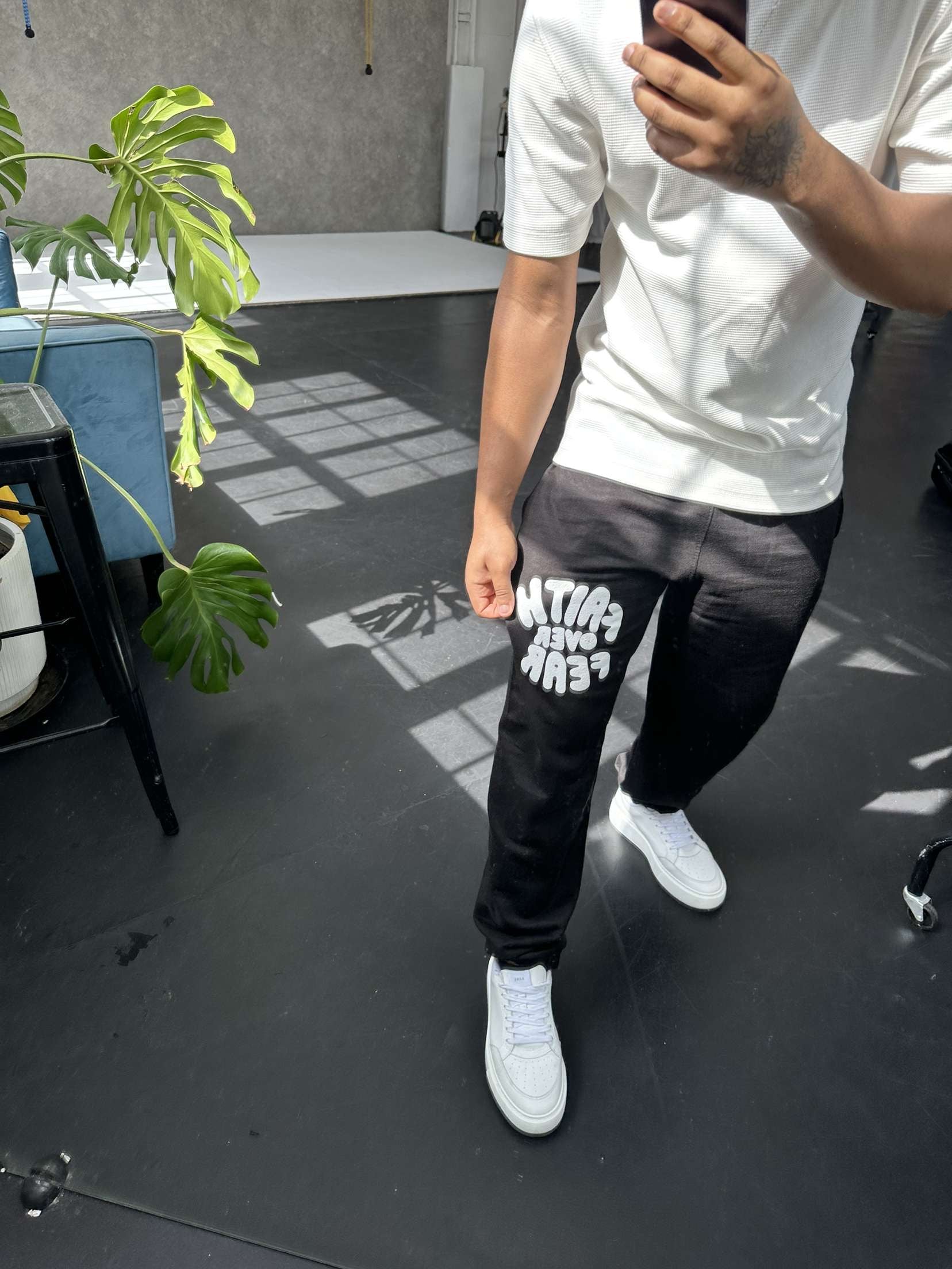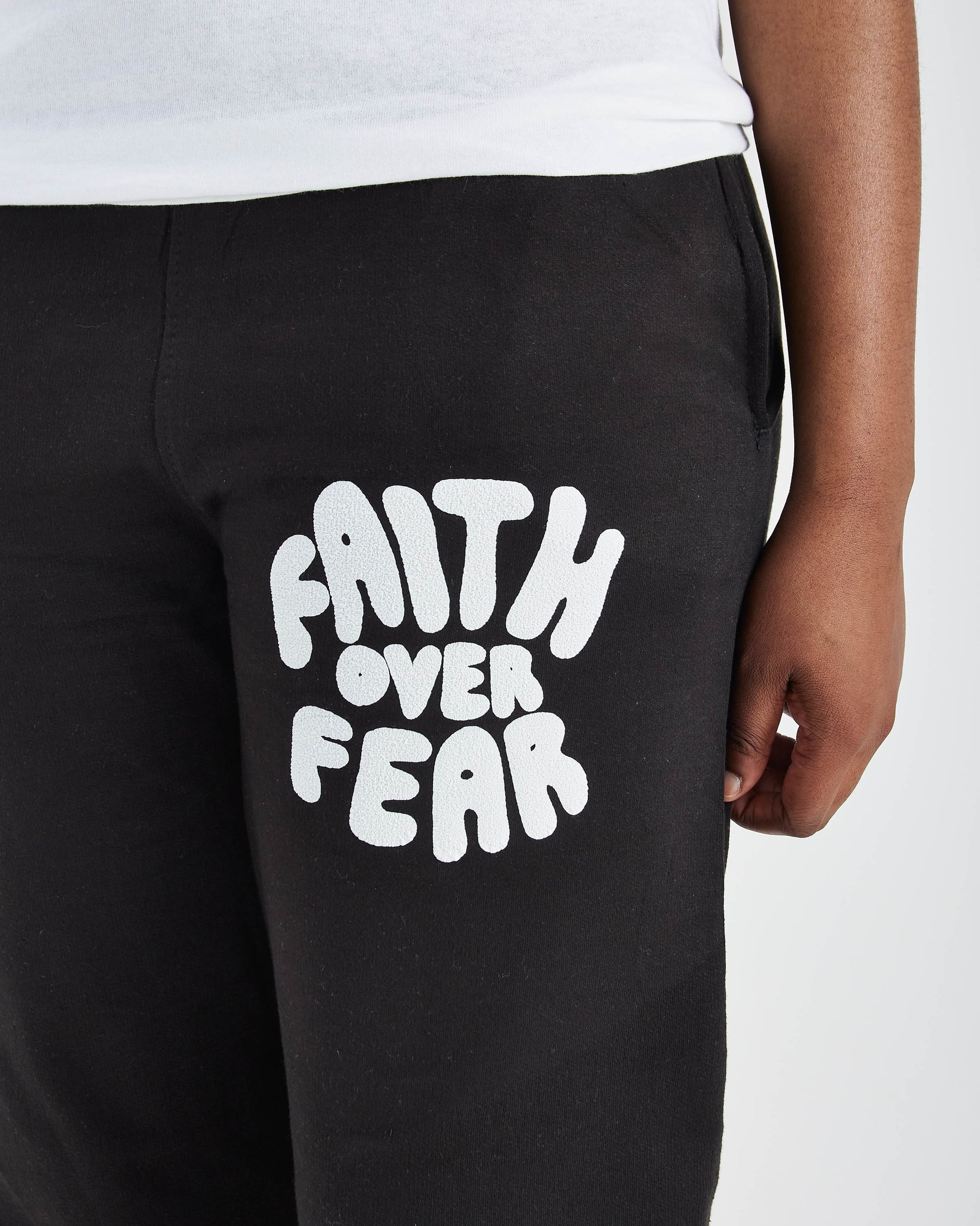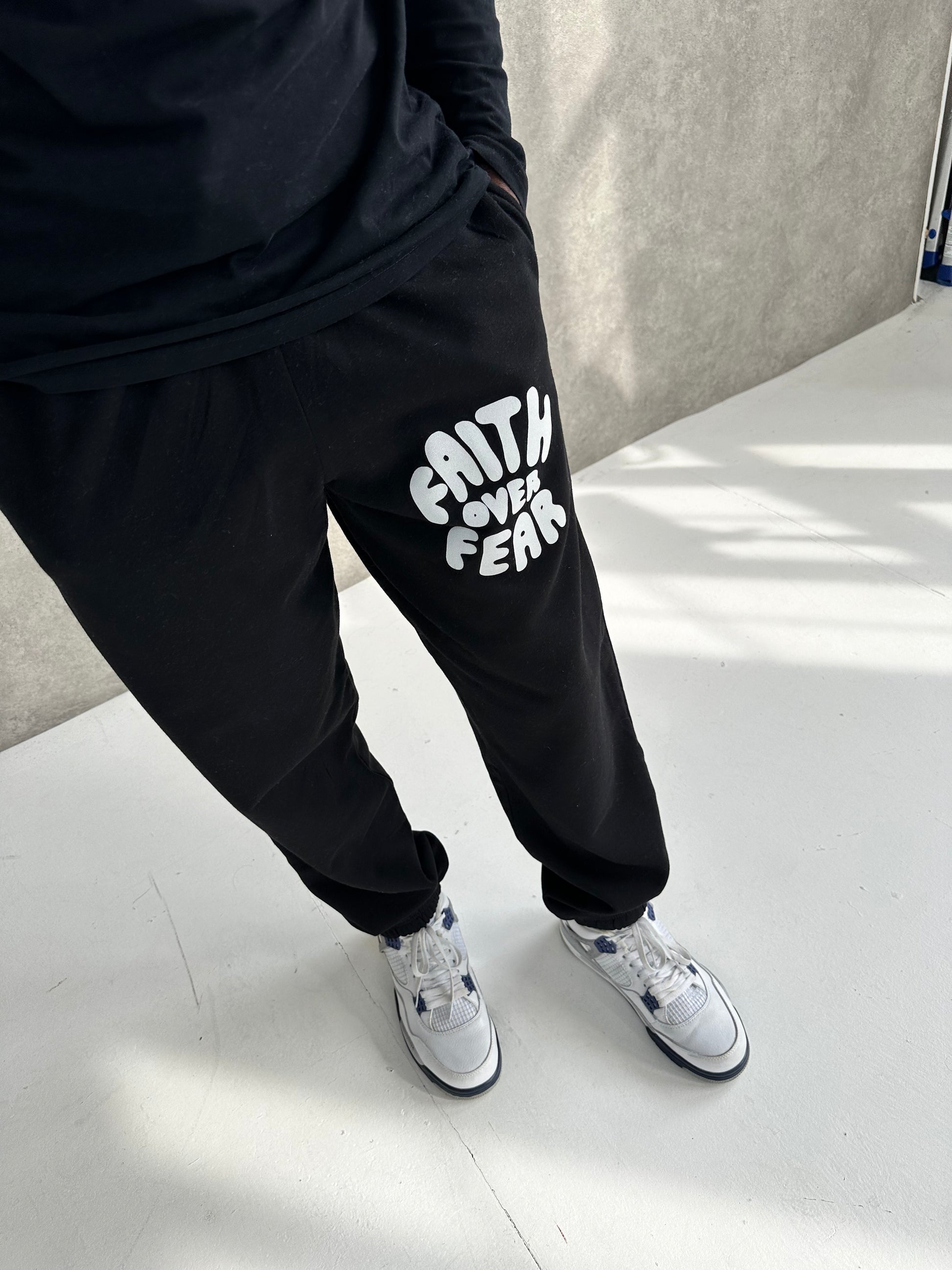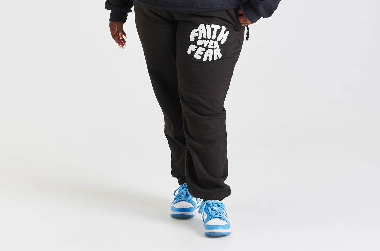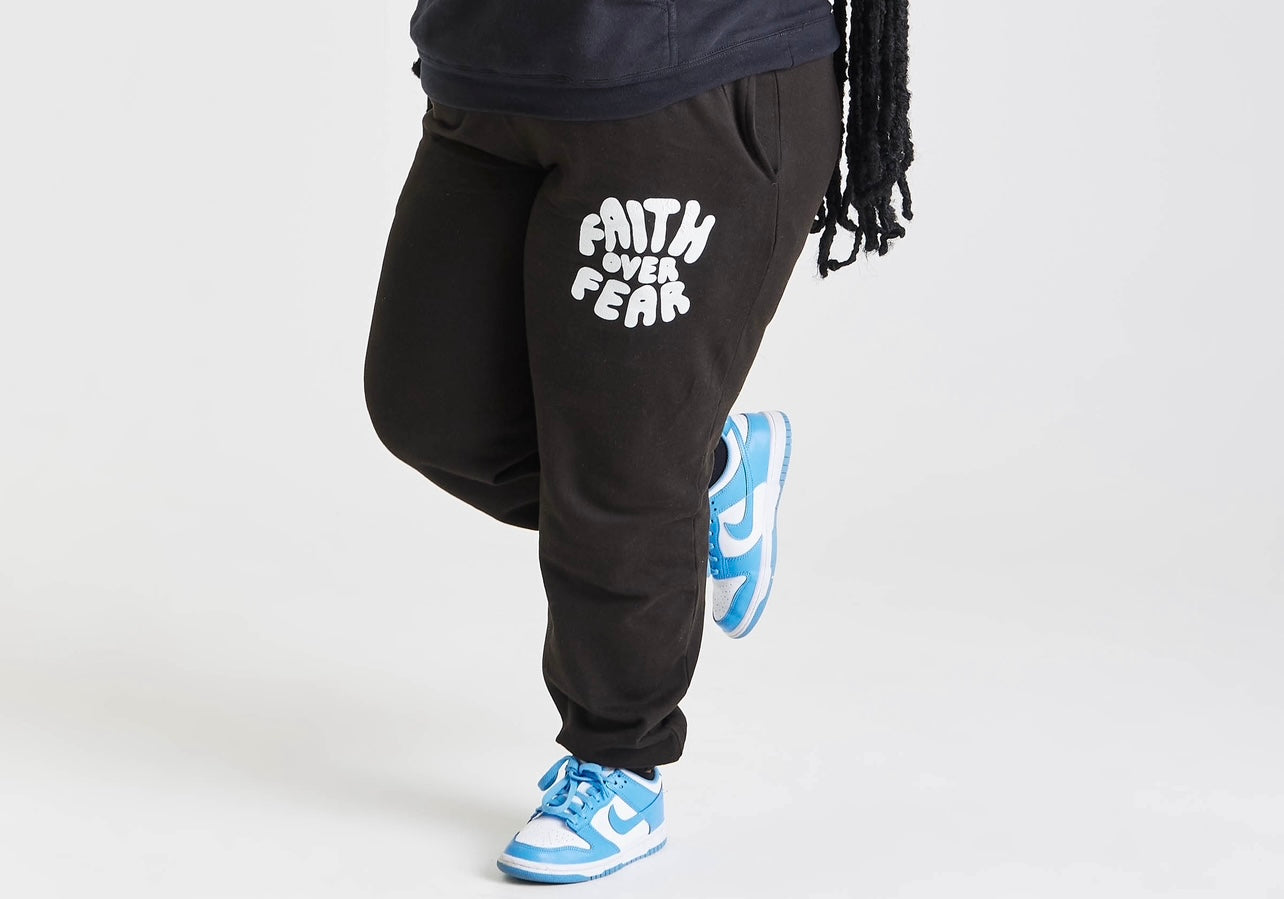 FAITH OVER FEAR PUFF PRINT JOGGERS | BLACK / WHITE