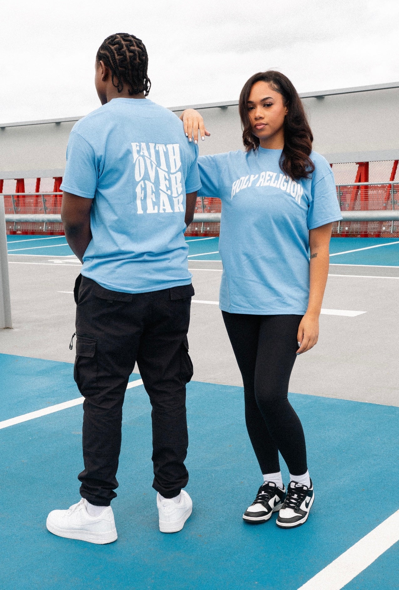 FAITH OVER FEAR TEE | SKY BLUE / WHITE