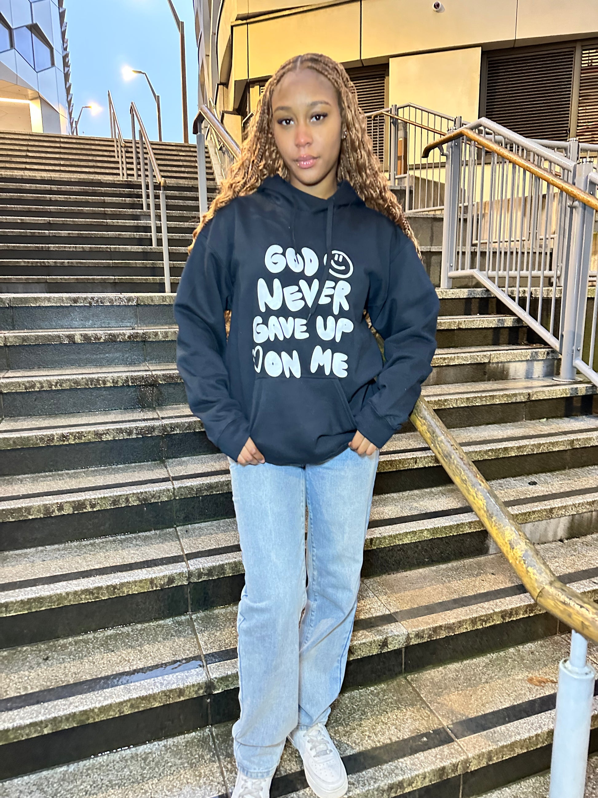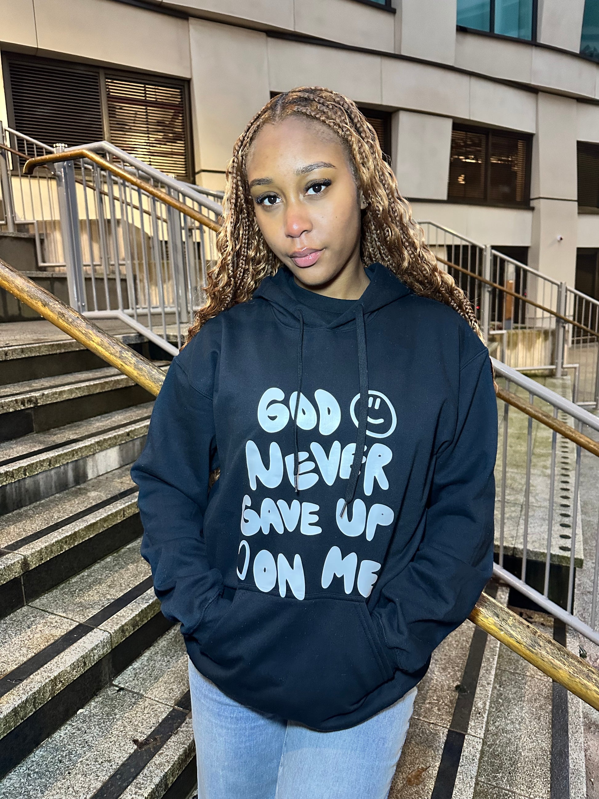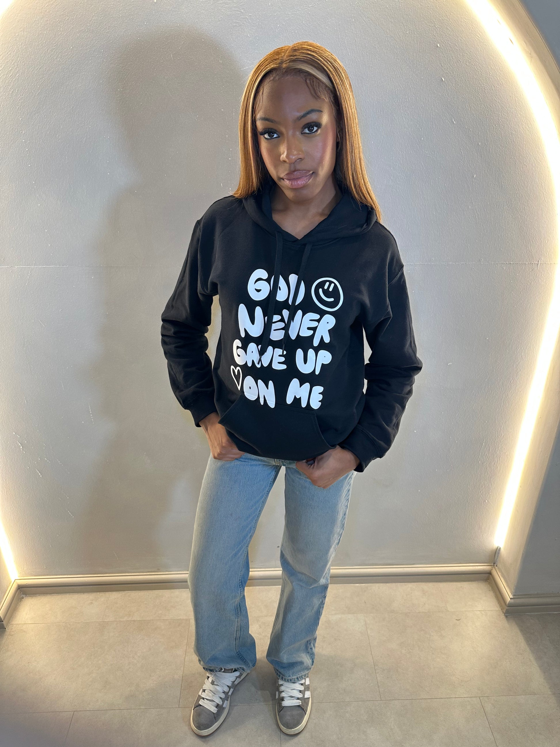 GOD NEVER GAVE UP ON ME HOODIE | BLACK / WHITE