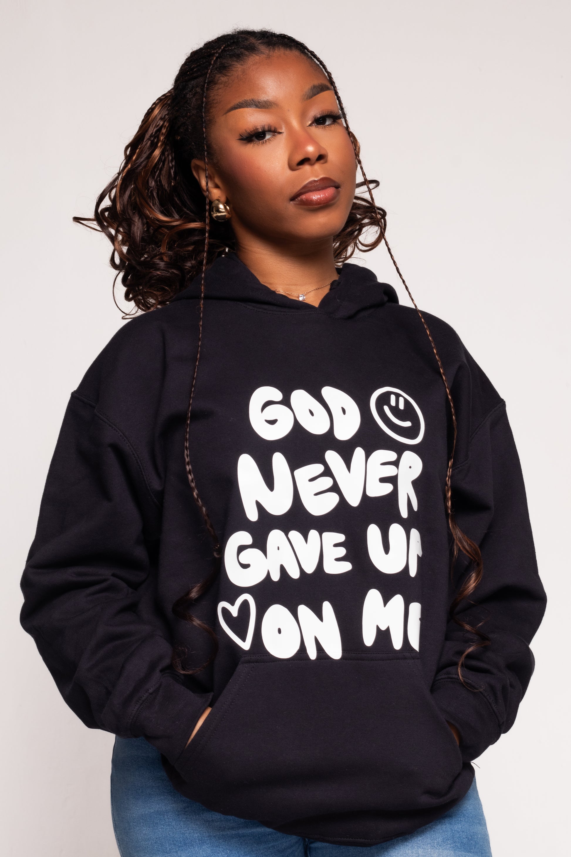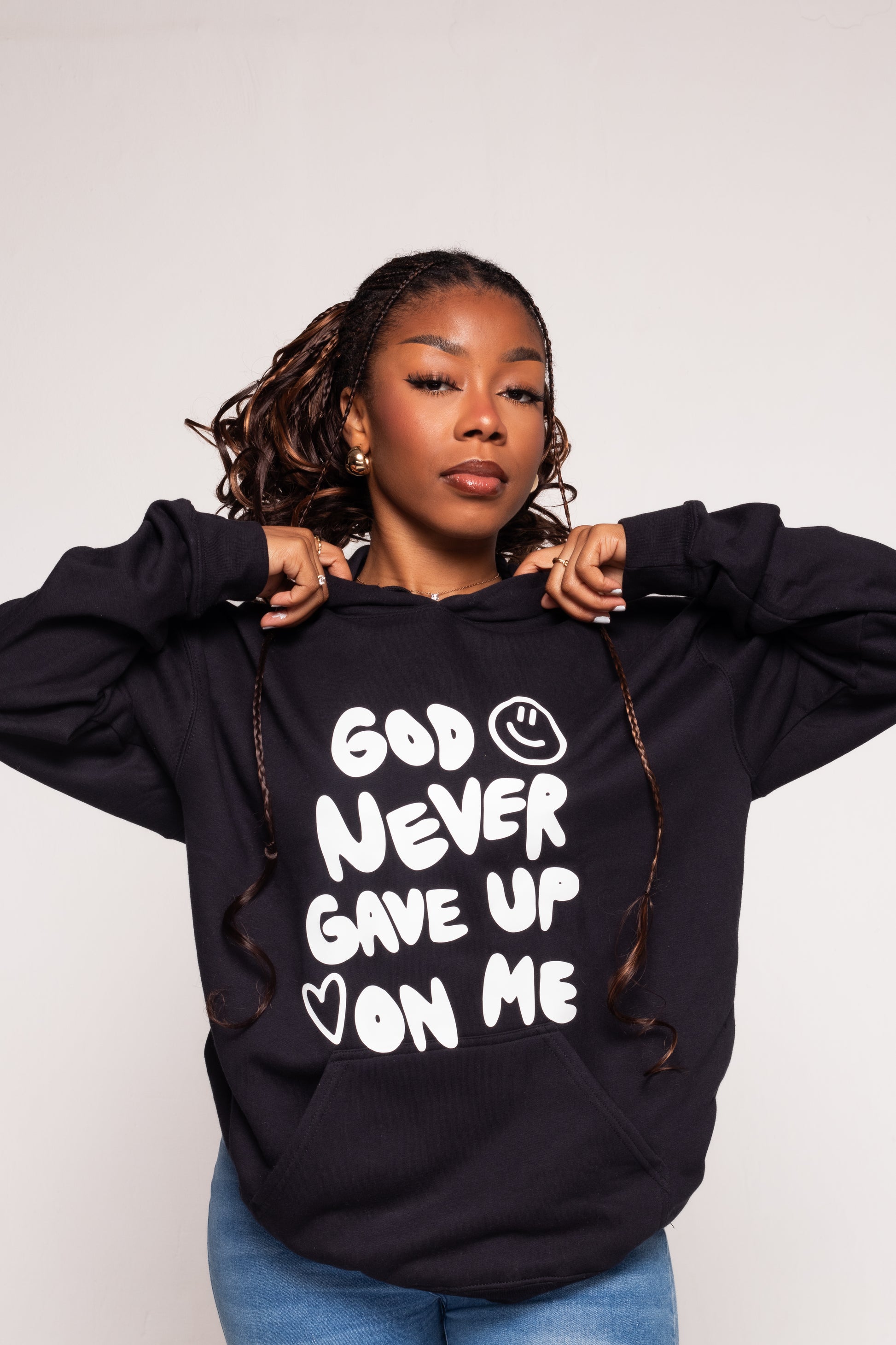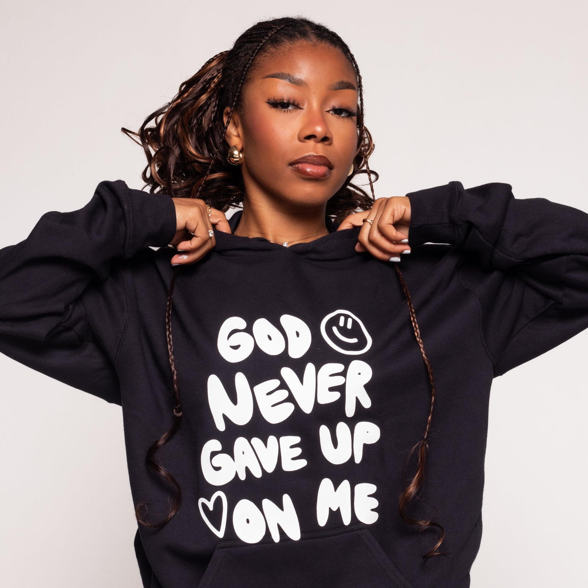 GOD NEVER GAVE UP ON ME HOODIE | BLACK / WHITE