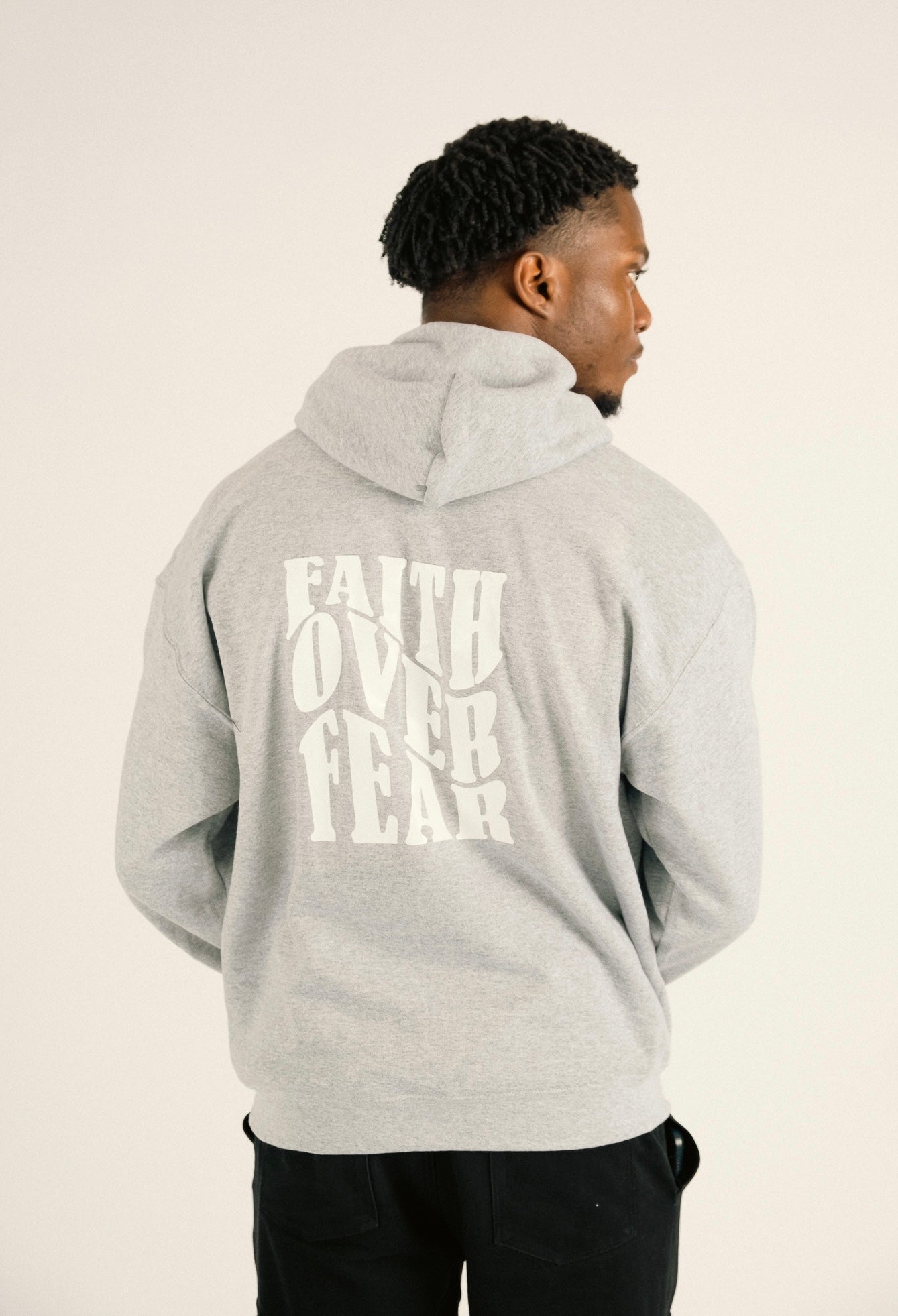 FAITH OVER FEAR HOODIE | GREY / WHITE