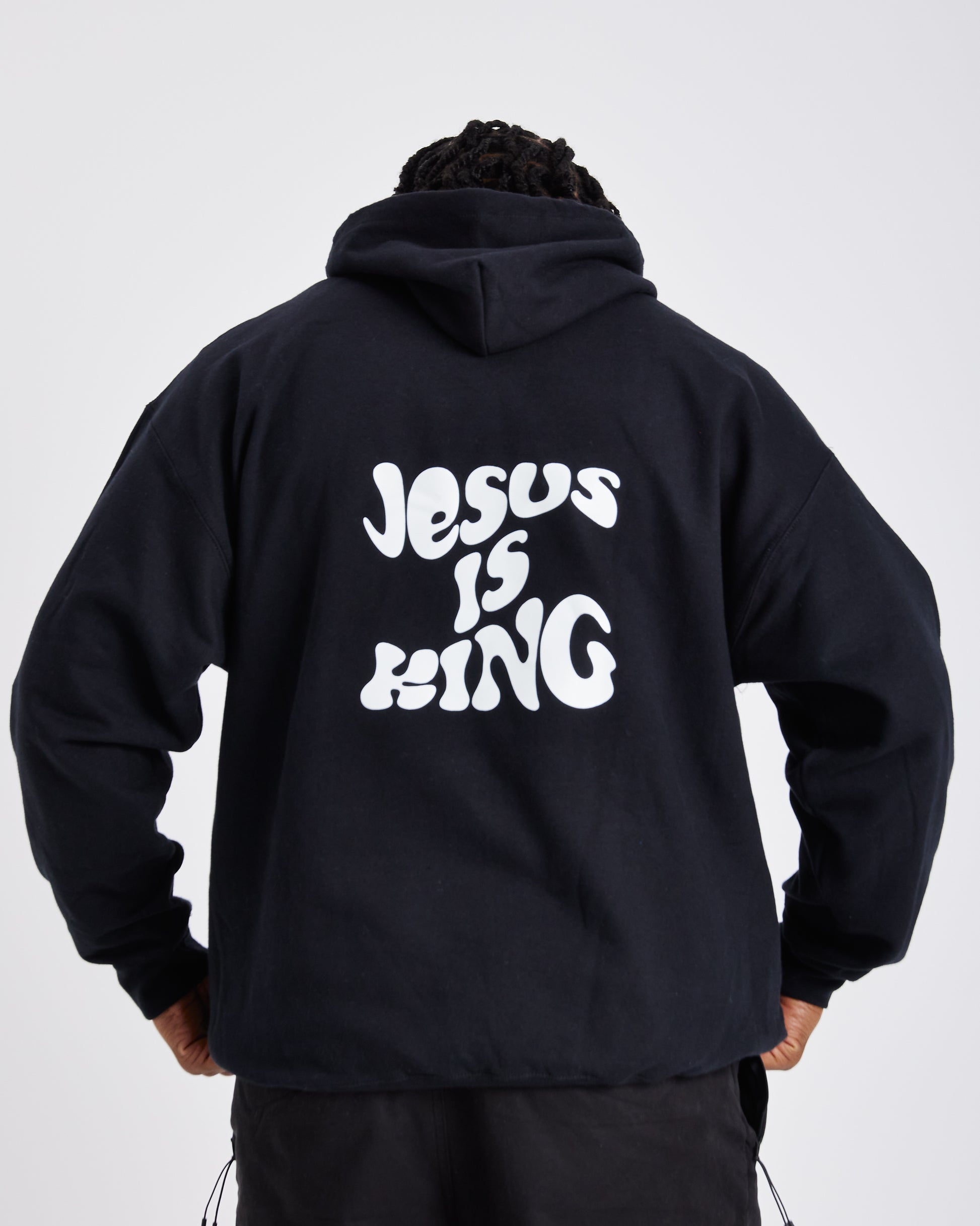 JESUS IS KING PREMIUM HOODIE | BLACK / WHITE
