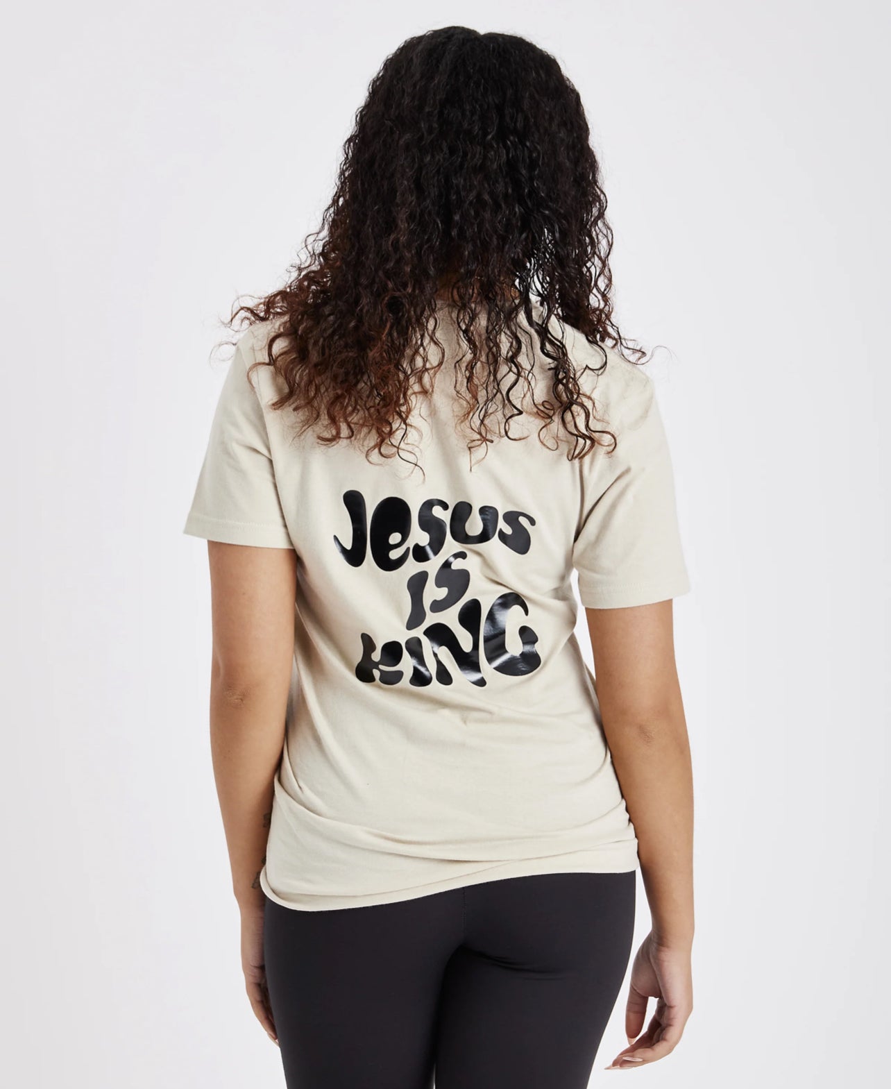 JESUS IS KING PREMIUM TEE | SAND / BLACK
