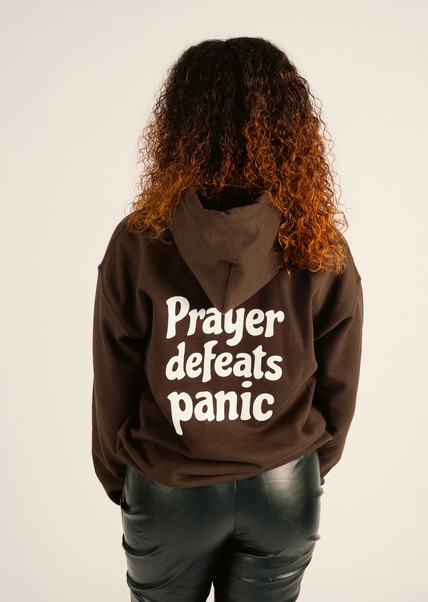 PRAYER DEFEATS PANIC HOODIE | CHOCOLATE / WHITE