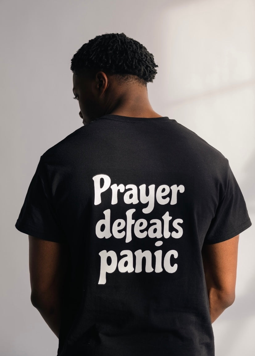 PRAYER DEFEATS PANIC TEE | BLACK / WHITE